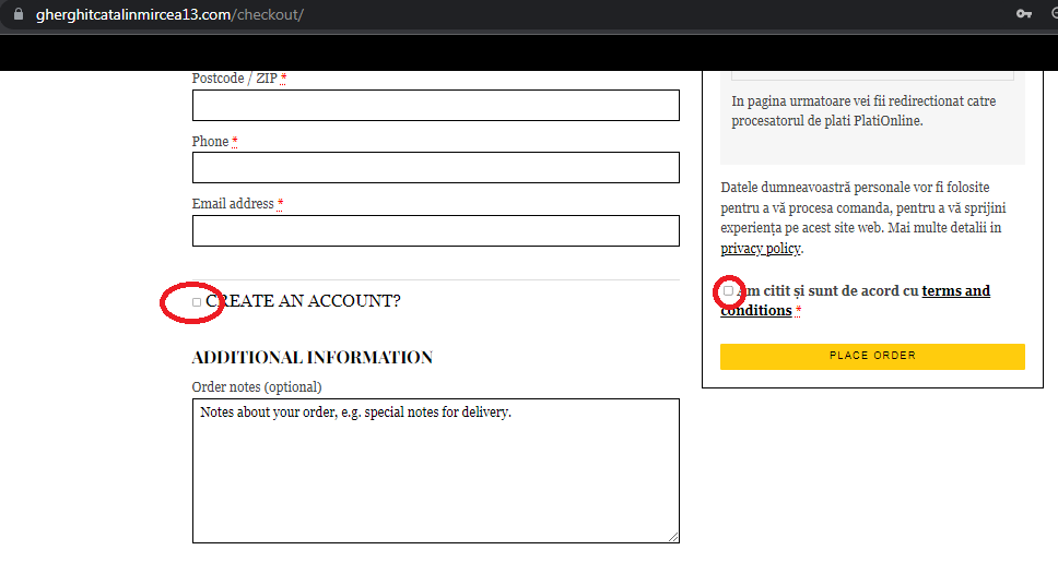 Procesul de realizare a unei comenzi pe acest site este intuitiv și standard pentru magazinele online. Cu toate acestea dorim să venim în întâmpinarea ta în orice situație care poate apărea pe parcursul procesului, iar în cazul unor dificultăți sau erori apărute în procesul de checkout, mă puteți contacta direct pe email : tehnic@gherghitcatalinmircea13.com